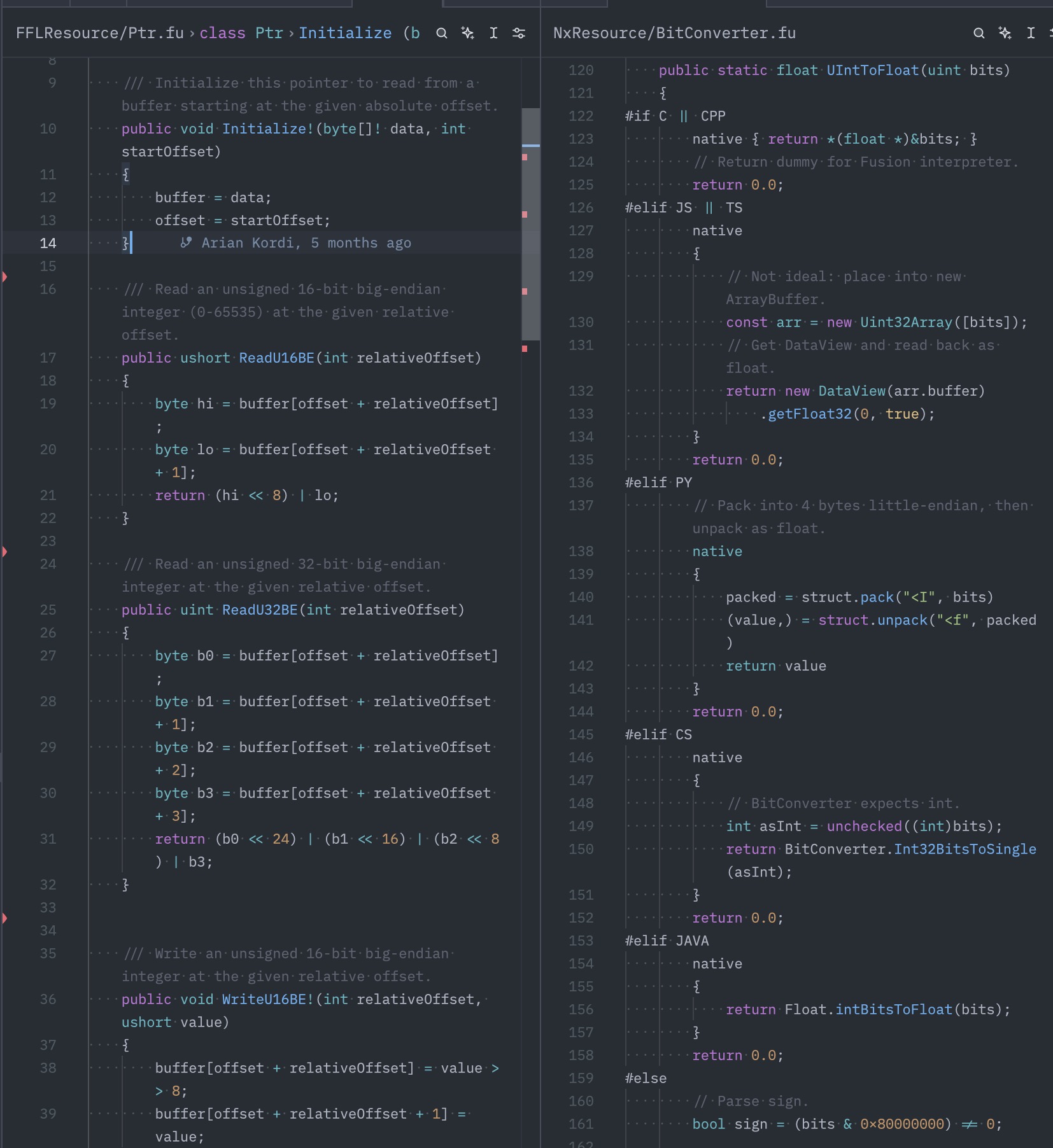 … In hindsight this is obvious but it took me a while to get there. And it’s actually a benefit: there’s no struct-parsing library overhead, no import needed, nothing to install. The Fusion output is essentially the same operations Nintendo wrote, in whatever target language you’re using.