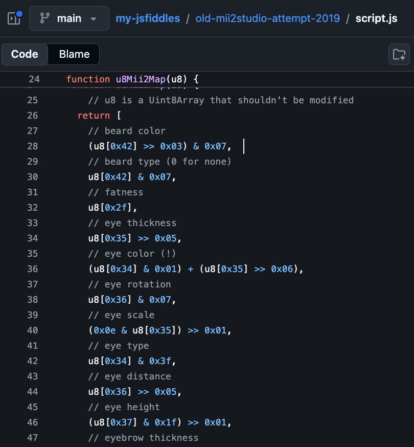It gets even messier when there’s fields smaller than a byte large (bitfields), which most Mii formats have. You have to do some bit-shifting that can get confusing really fast.