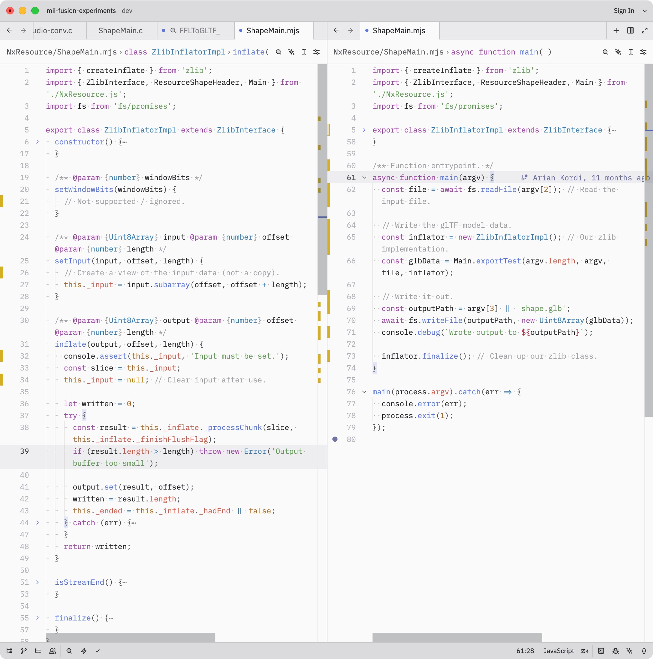 Example in Node.js: You provide a class for zlib -> read resource -> export model -> write to file. (Any of those steps can change, but the core logic is same across all languages.)
