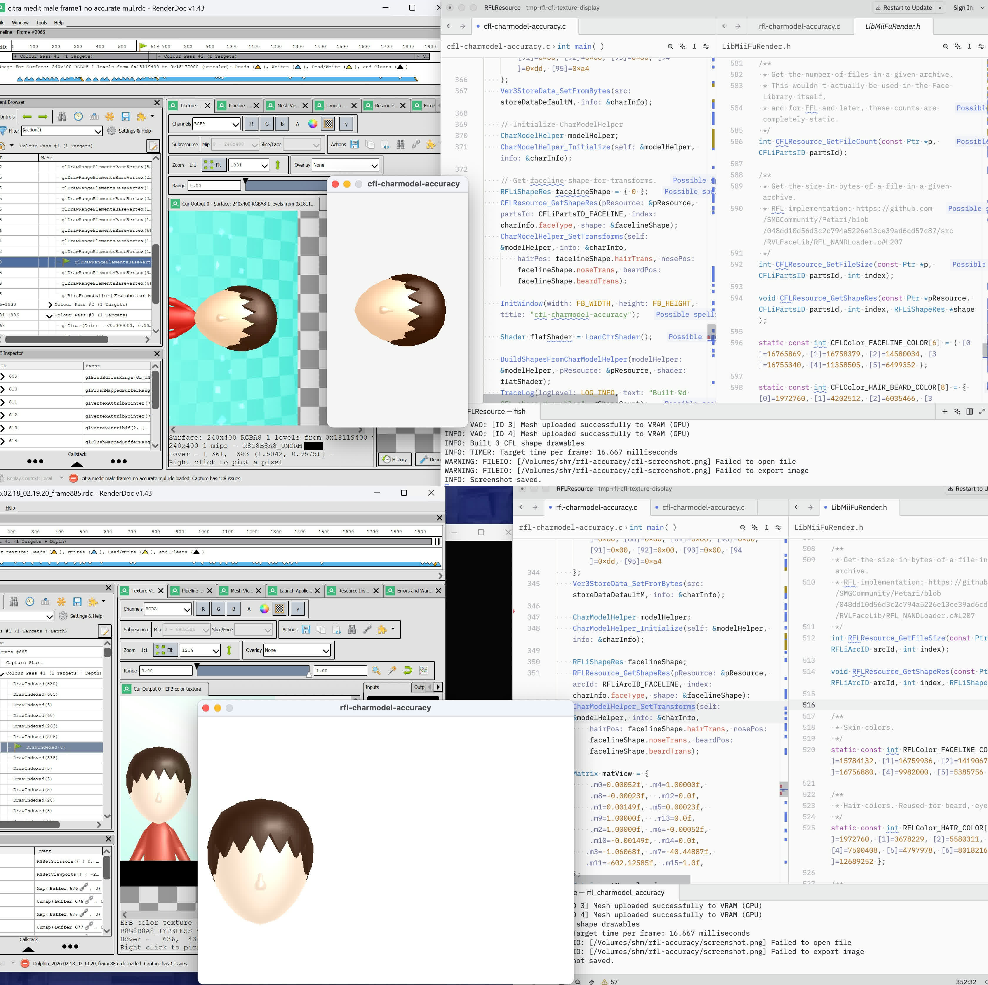 - Example: There is a test for facial feature positioning (mask) where the exact coordinates were captured from a Wii U game in RenderDoc, and it matches exactly.