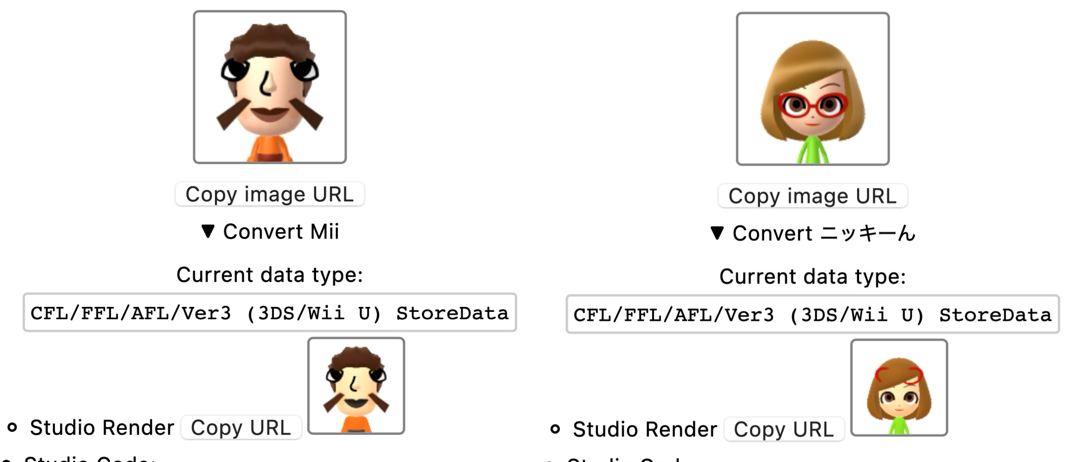 Examples of issues faced when using “mii2studio” and its Kaitai Structs. Many others share the same bugs as a result of mindlessly copying from them. My fix for glassY and other PRs never got merged.