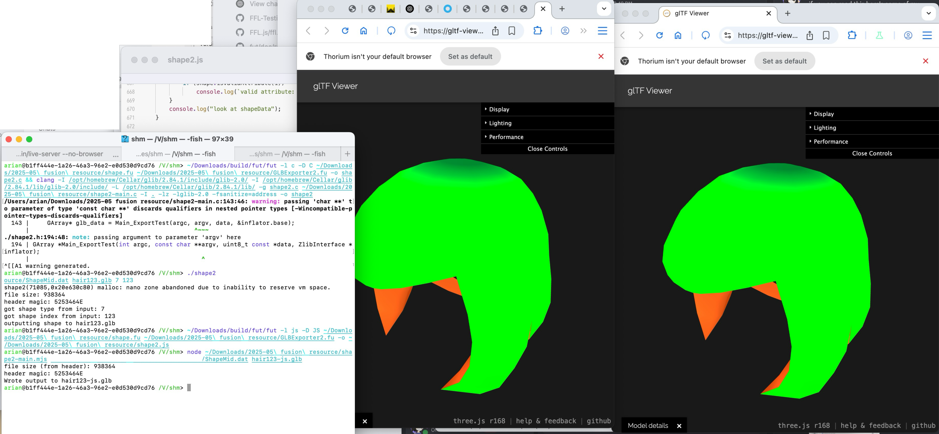 One of my coolest examples (NxResource): Extracts shape assets and encodes them in glTF, completely in Fusion, working in C and JS both.